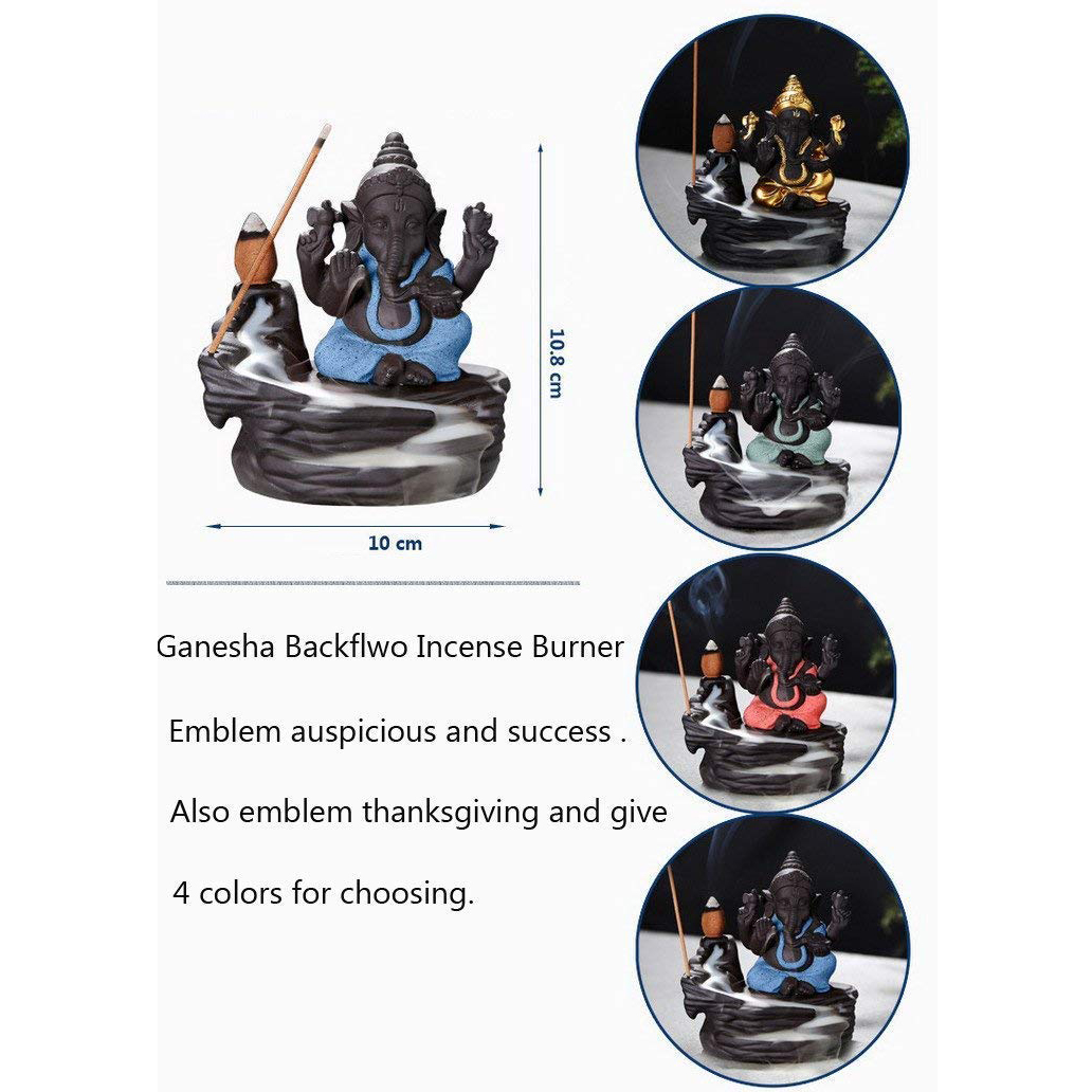 Specification: Ganesha Smoke Fountain Backflow Waterfall Cone Incense Holder Showpiece Statue with 10 Back Flow Incense Cone (Blue)